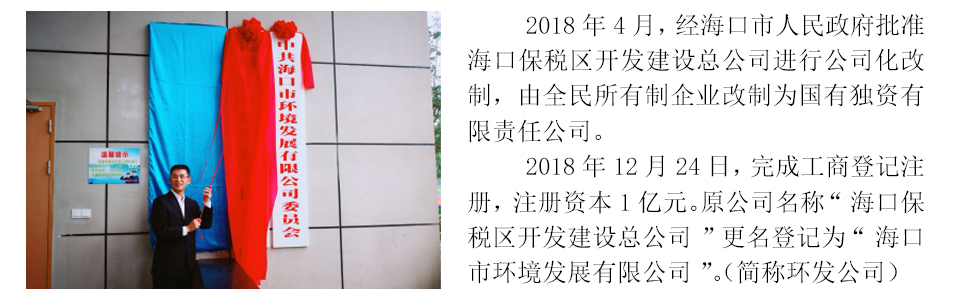 海口市環(huán)境發(fā)展有限公司是??谑袑?lài)?guó)有獨(dú)資有限責(zé)任公司,于2018年12月正式掛牌運(yùn)營(yíng),注冊(cè)資本1億元,由1993年12月成立的海口保稅區(qū)開(kāi)發(fā)建設(shè)總公司進(jìn)行公司化改制而成,核心業(yè)務(wù)為環(huán)境環(huán)衛(wèi)產(chǎn)業(yè)投資和運(yùn)營(yíng)、資產(chǎn)運(yùn)營(yíng)和管理,培育業(yè)務(wù)為工程管理